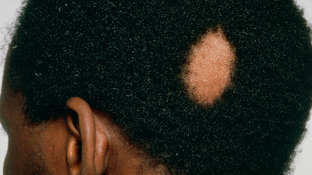 Alopecia areata is an autoimmune disease that attacks the body's hair follicles, causing hair loss.